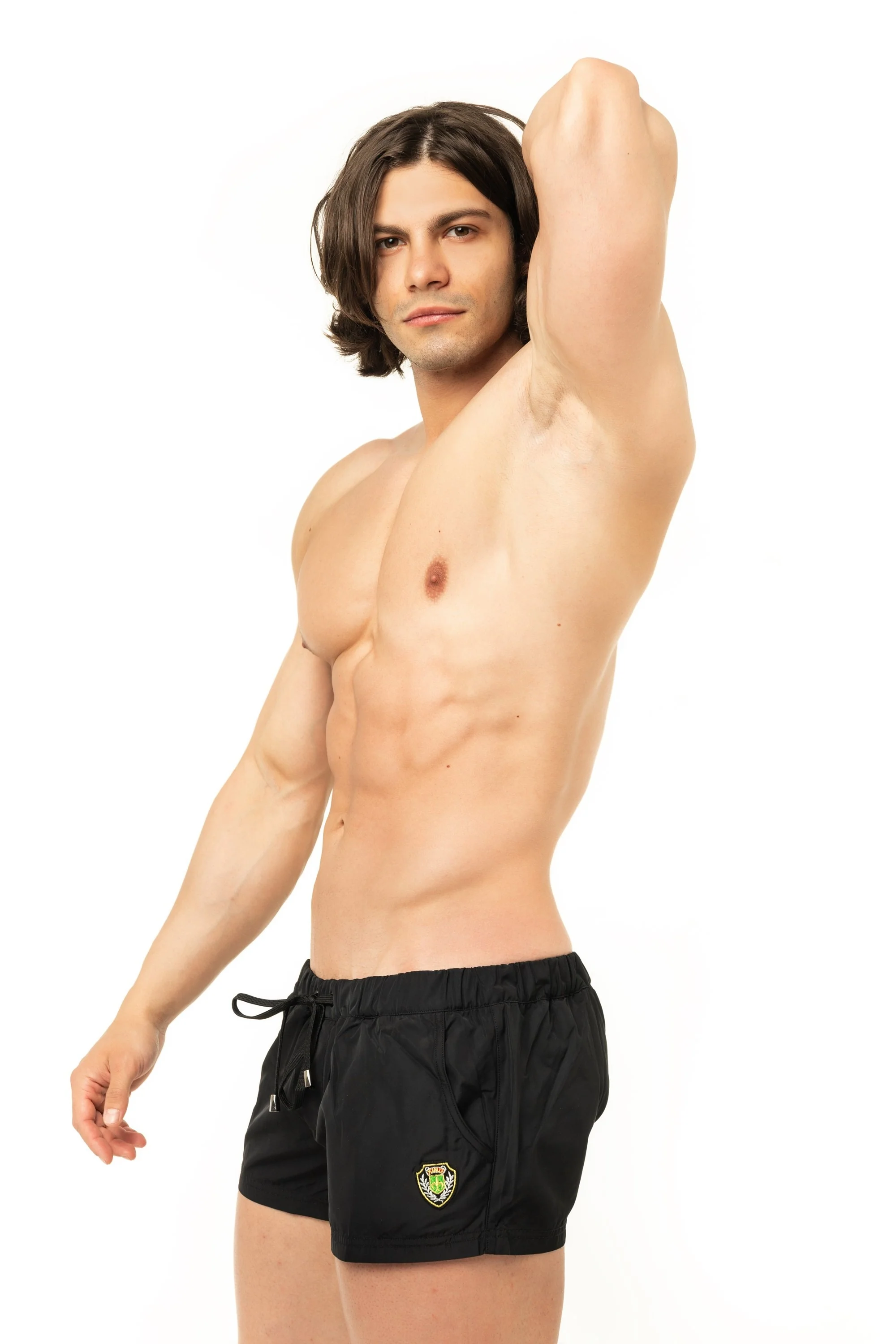 Fashionable men need knock-about wear as well. With these shorts inspired by Rugby, you’ll be in a League of your own. They’re crafted using lightweight fabric and partial mesh lining for added support. Details include pockets, drawstring, embroidered badge and signature Marcuse gold embroidered logo on the rear.
