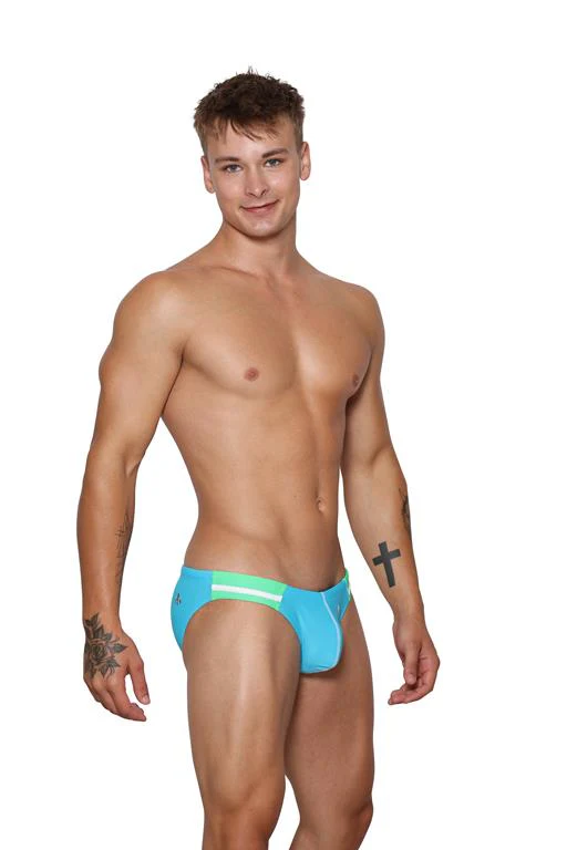 Available in three timeless colour option black, white, and blue/green .The Urbane swim brief is versatile and ready for any setting. The contrast colour side panels add a touch of dynamic flair, making this swimwear a standout piece.